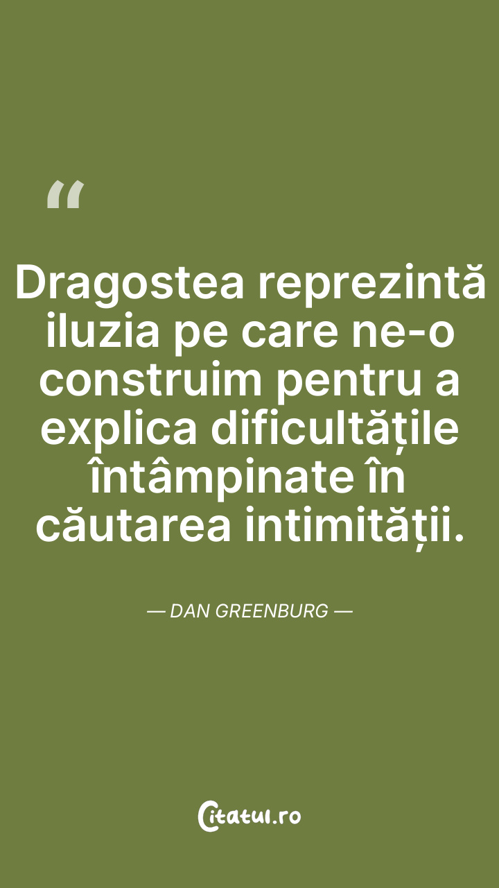 Dragostea reprezintă iluzia pe care ne-o construim pentru a explica dificultățile întâmpinate în căutarea intimității. Dan Greenburg