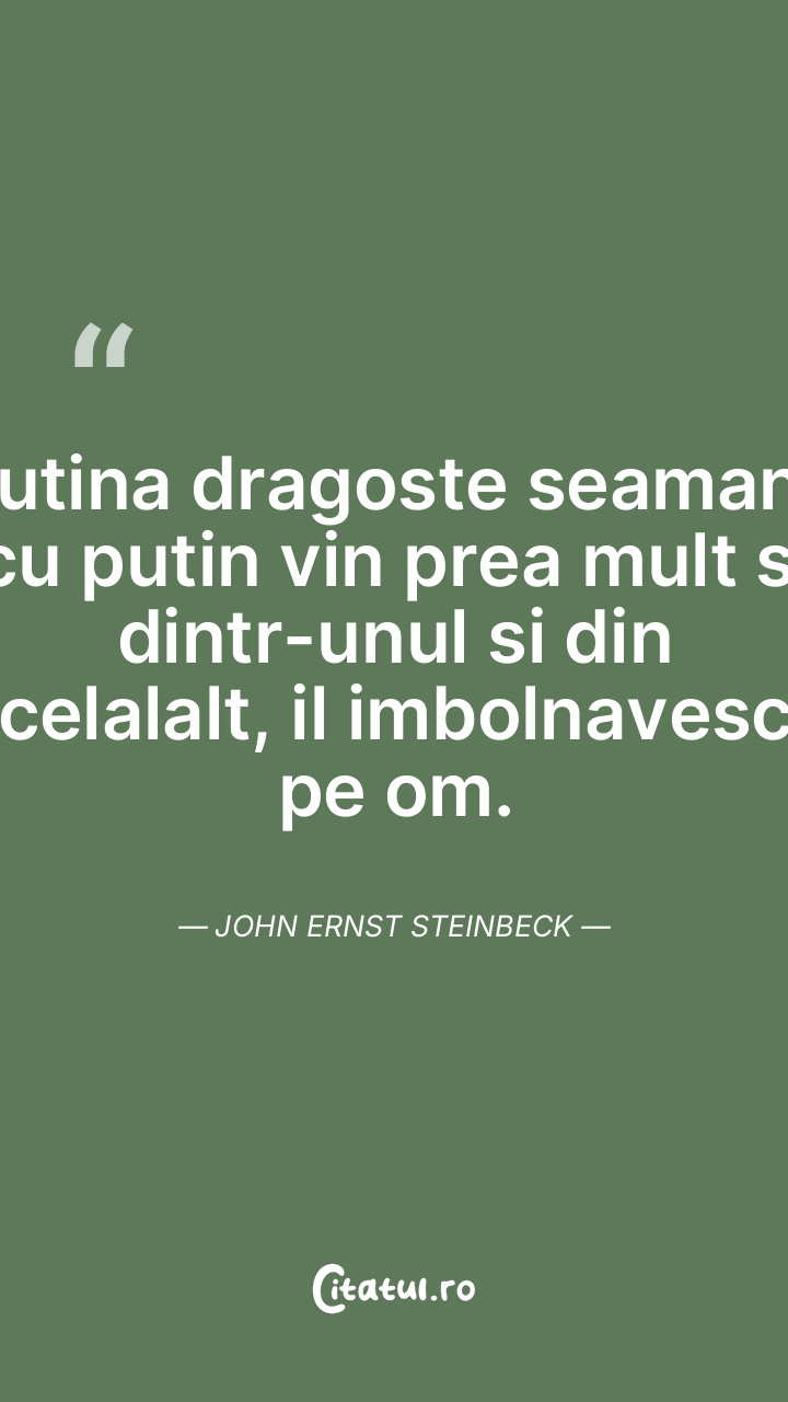 Putina dragoste seamana cu putin vin prea mult si dintr-unul si din celalalt, il imbolnavesc pe om. John Ernst Steinbeck