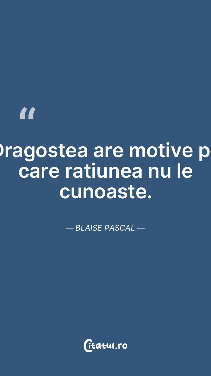 Dragostea are motive pe care ratiunea nu le cunoaste. Blaise Pascal