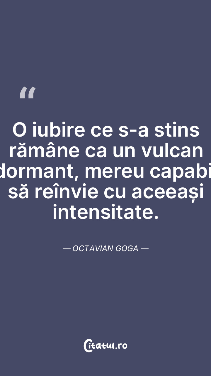 O iubire ce s-a stins rămâne ca un vulcan dormant, mereu capabil să reînvie cu aceeași intensitate. Octavian Goga