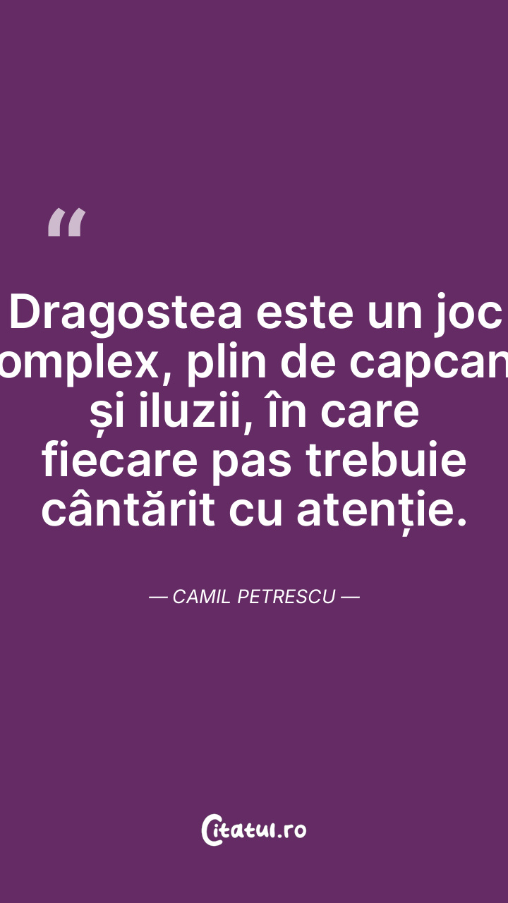 Dragostea este un joc complex, plin de capcane și iluzii, în care fiecare pas trebuie cântărit cu atenție. Camil Petrescu