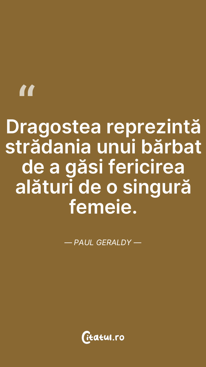 Dragostea reprezintă strădania unui bărbat de a găsi fericirea alături de o singură femeie. Paul Geraldy