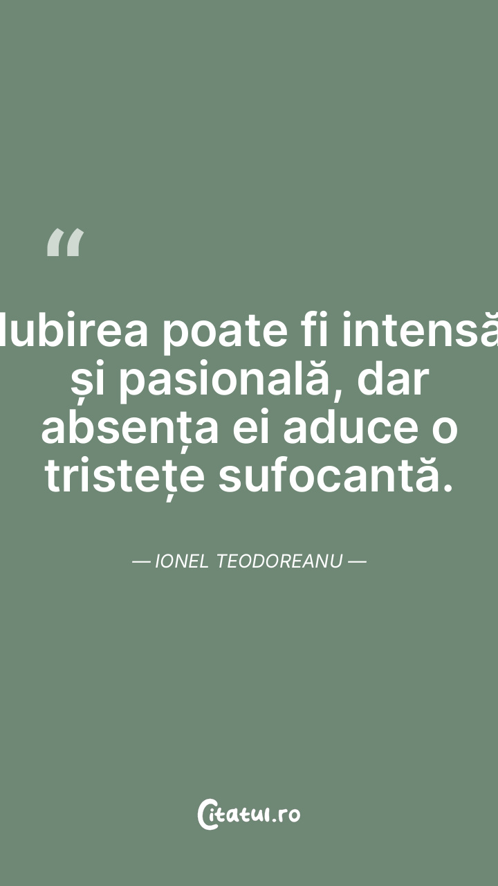 Iubirea poate fi intensă și pasională, dar absența ei aduce o tristețe sufocantă. Ionel Teodoreanu