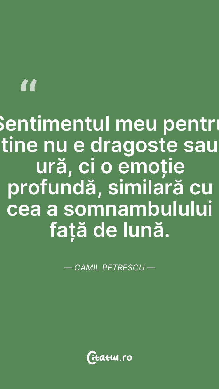 Sentimentul meu pentru tine nu e dragoste sau ură, ci o emoție profundă, similară cu cea a somnambulului față de lună. Camil Petrescu