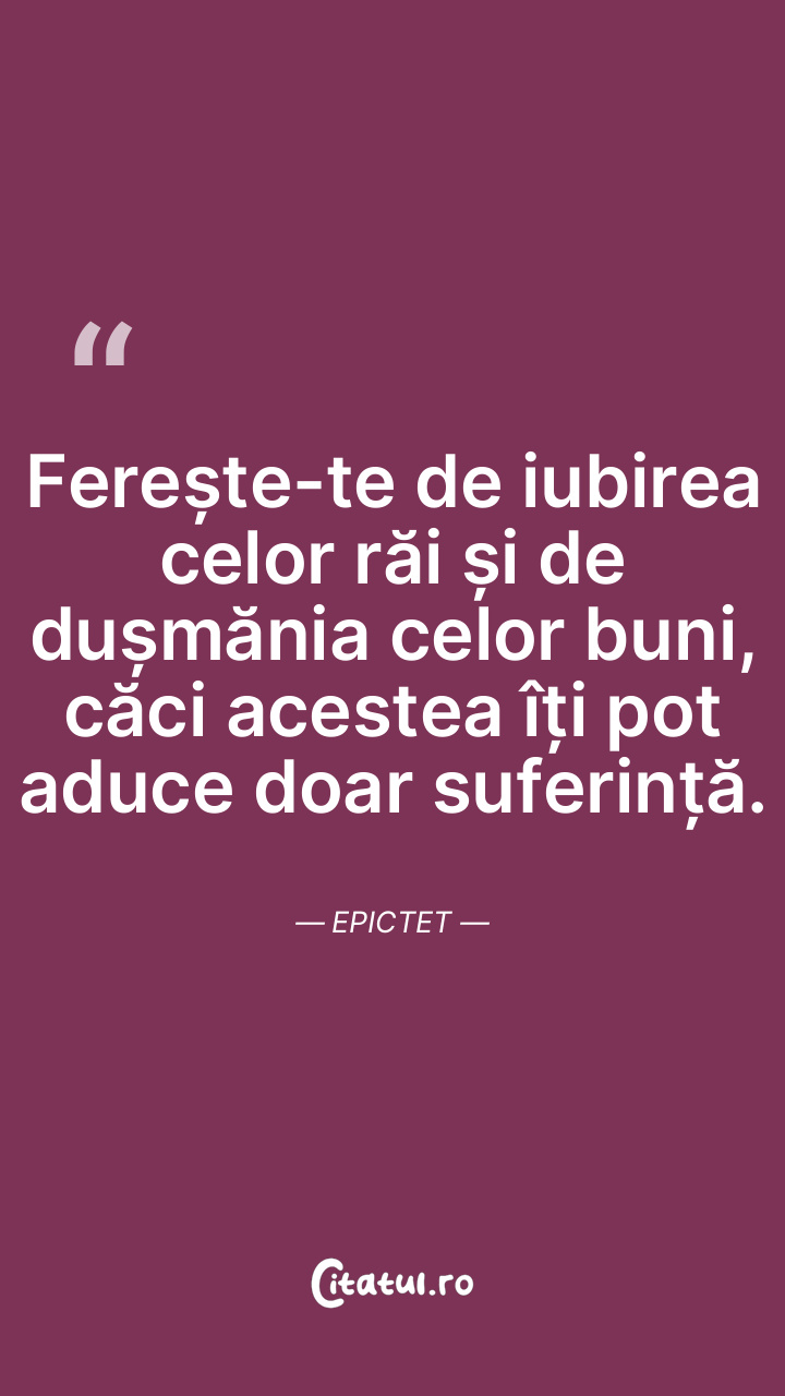 Ferește-te de iubirea celor răi și de dușmănia celor buni, căci acestea îți pot aduce doar suferință. Epictet