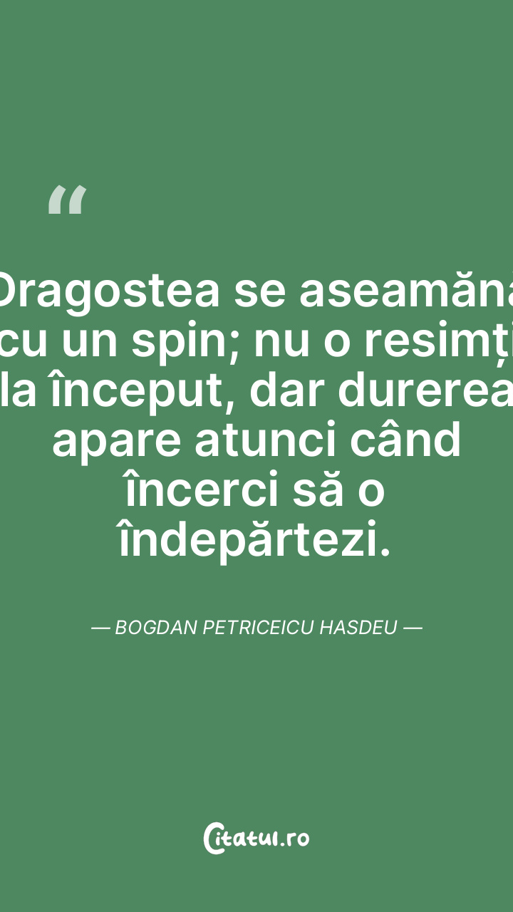 Dragostea se aseamănă cu un spin; nu o resimți la început, dar durerea apare atunci când încerci să o îndepărtezi. Bogdan Petriceicu Hasdeu