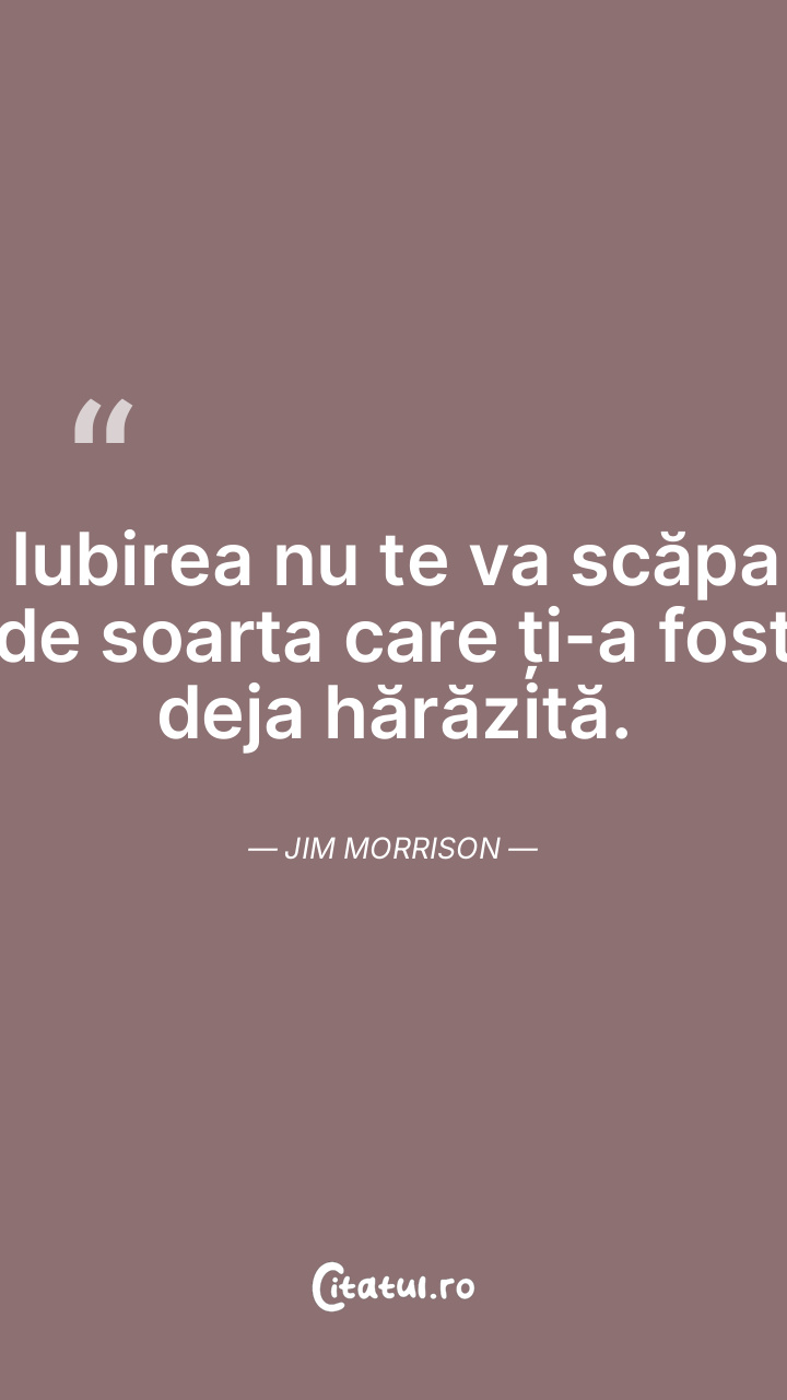 Iubirea nu te va scăpa de soarta care ți-a fost deja hărăzită. Jim Morrison