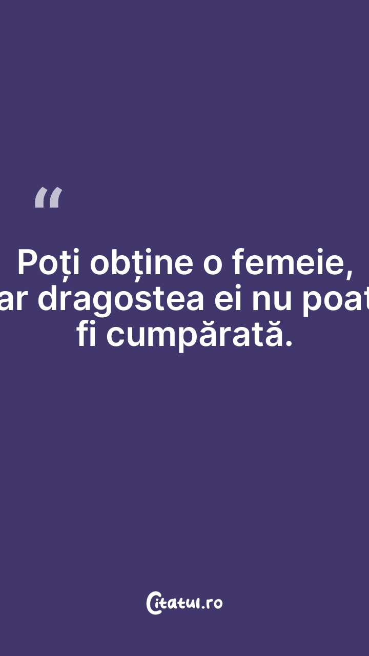 Poți obține o femeie, dar dragostea ei nu poate fi cumpărată.