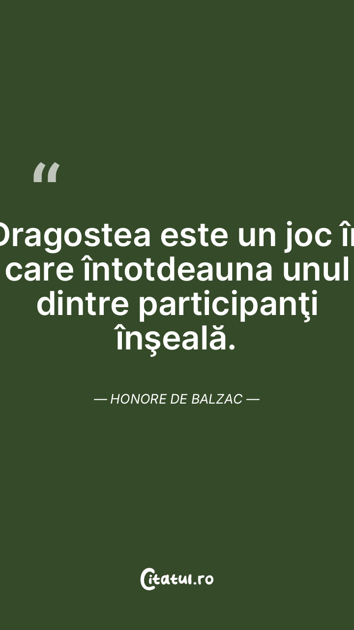 Dragostea este un joc în care întotdeauna unul dintre participanţi înşeală. Honore de Balzac