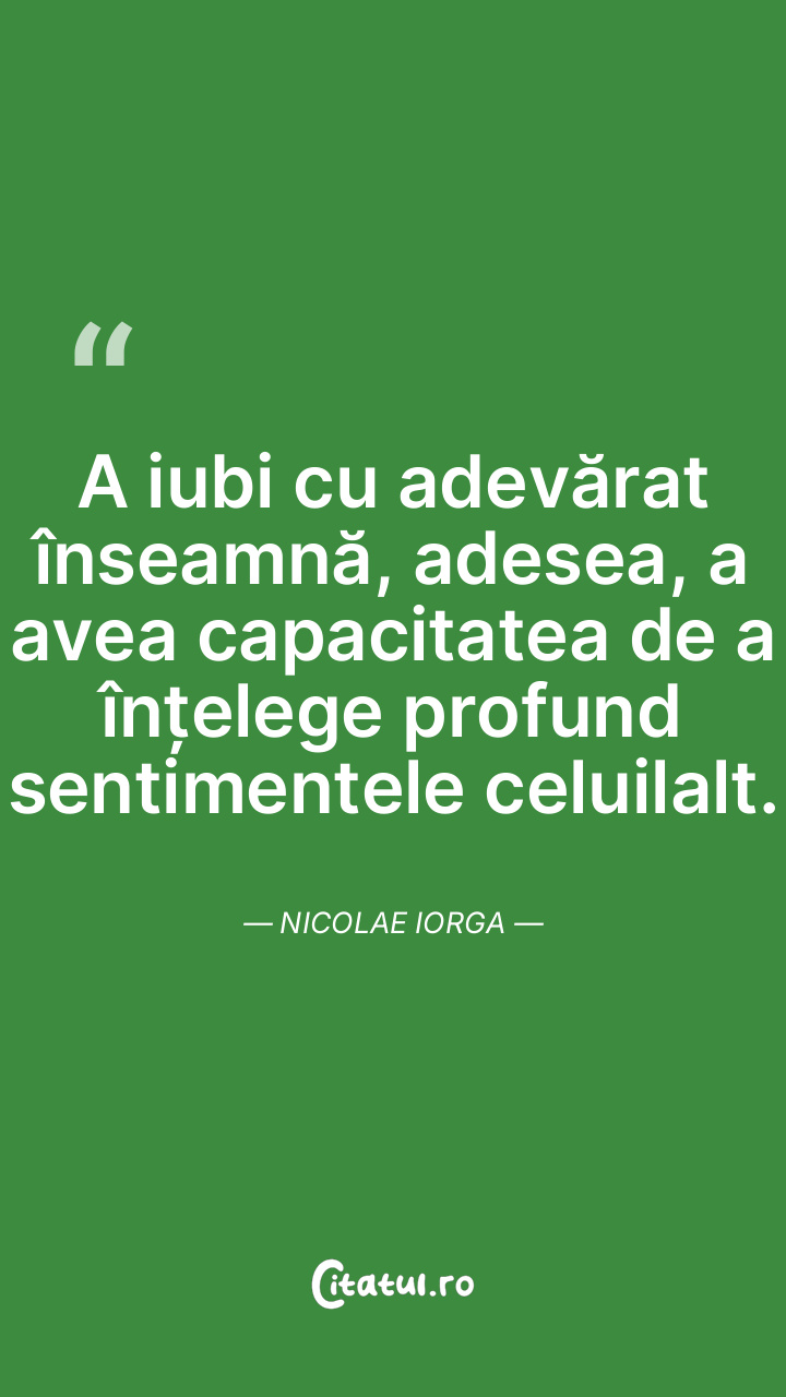 A iubi cu adevărat înseamnă, adesea, a avea capacitatea de a înțelege profund sentimentele celuilalt. Nicolae Iorga