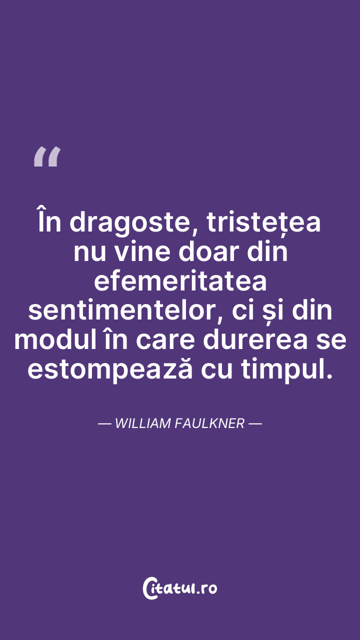 În dragoste, tristețea nu vine doar din efemeritatea sentimentelor, ci și din modul în care durerea se estompează cu timpul. William Faulkner
