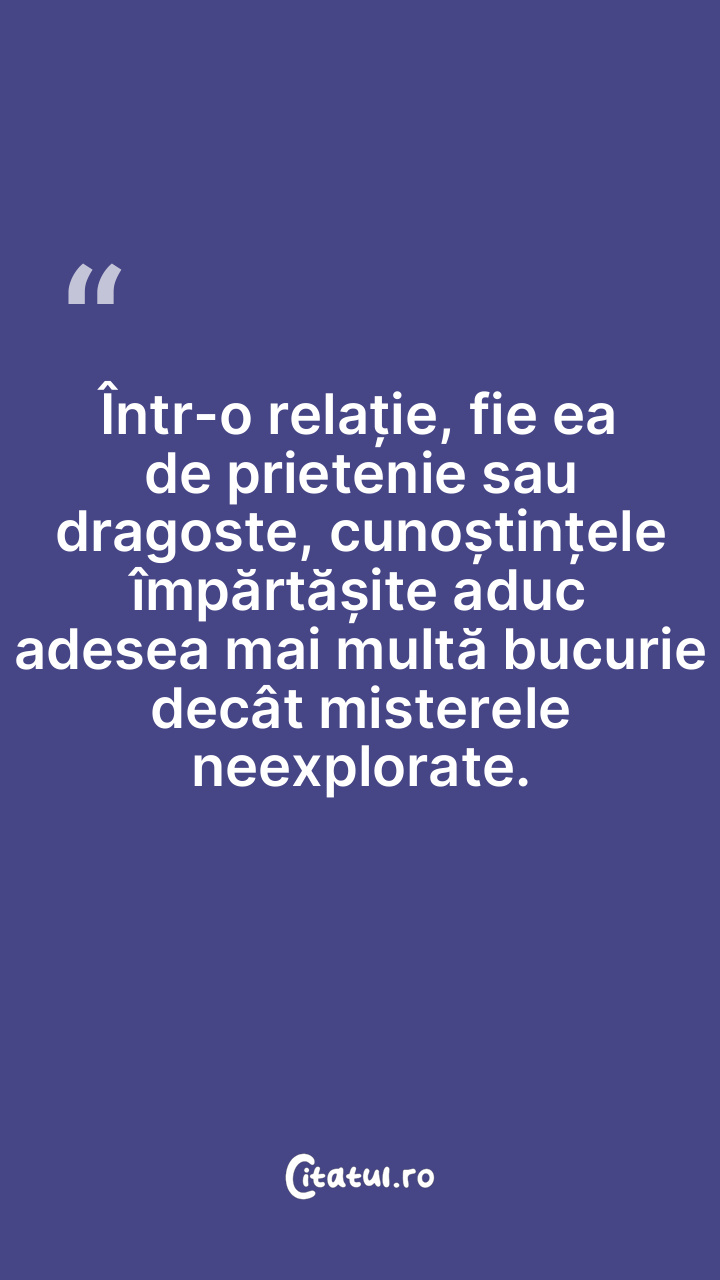 Într-o relație, fie ea de prietenie sau dragoste, cunoștințele împărtășite aduc adesea mai multă bucurie decât misterele neexplorate.