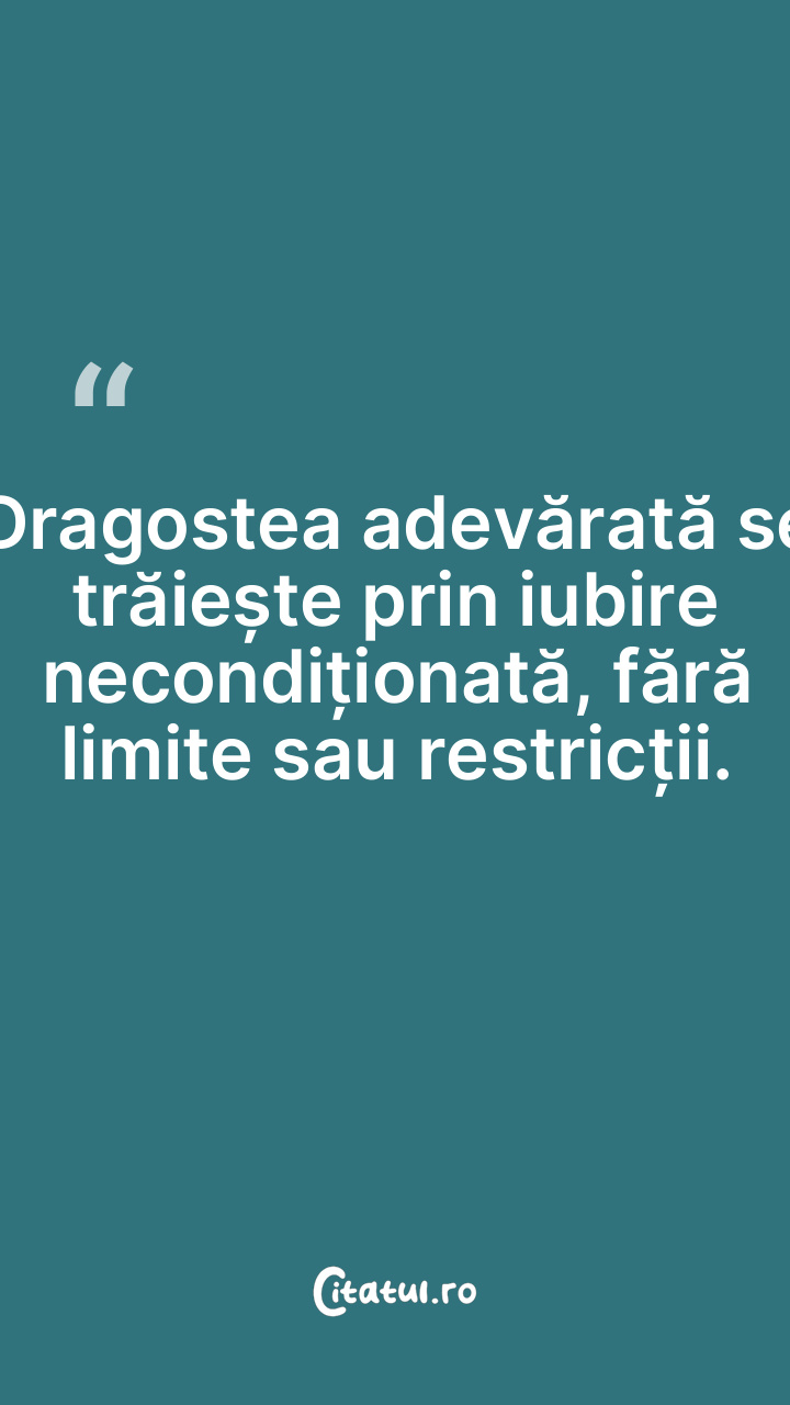 Dragostea adevărată se trăiește prin iubire necondiționată, fără limite sau restricții.