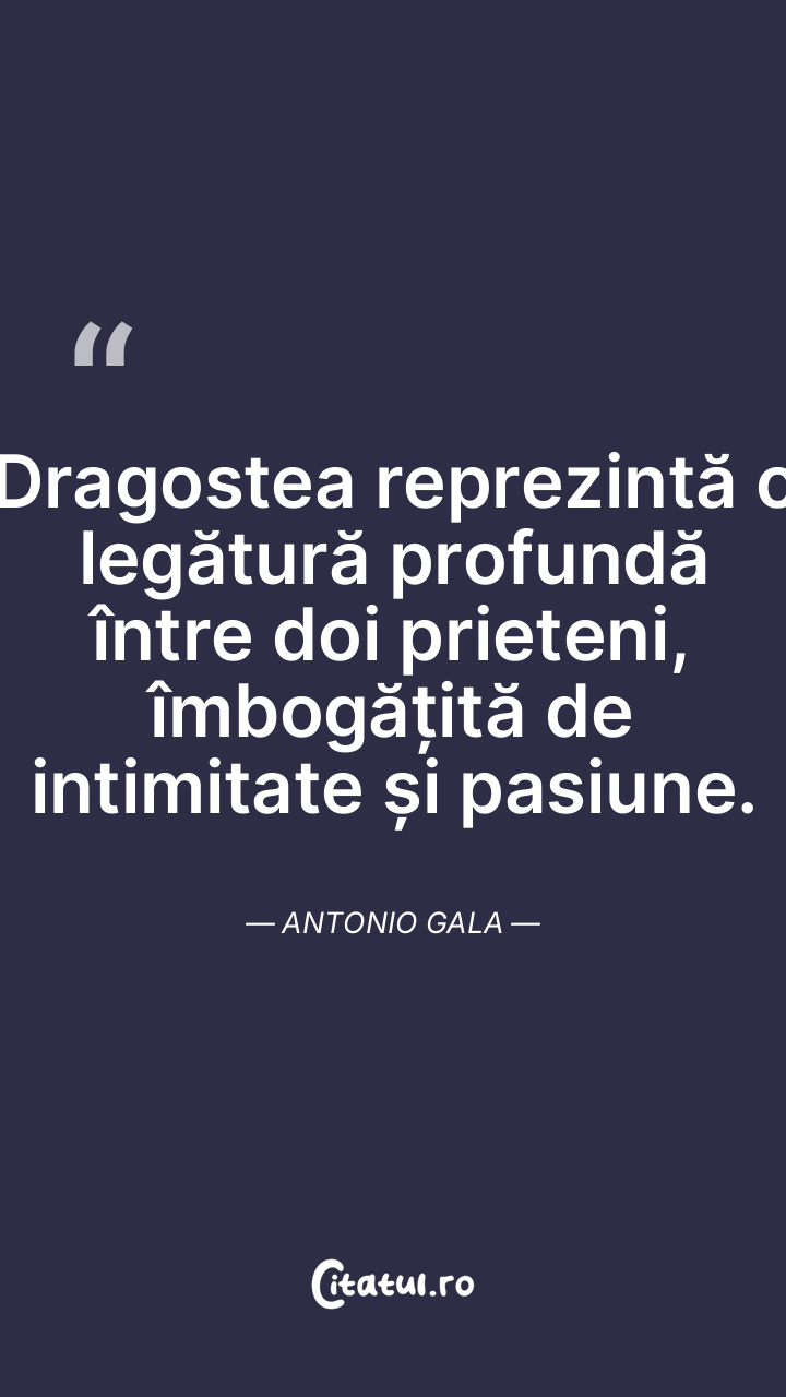Dragostea reprezintă o legătură profundă între doi prieteni, îmbogățită de intimitate și pasiune. Antonio Gala