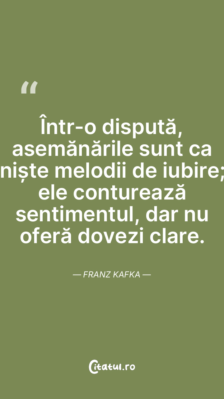 Într-o dispută, asemănările sunt ca niște melodii de iubire; ele conturează sentimentul, dar nu oferă dovezi clare. Franz Kafka