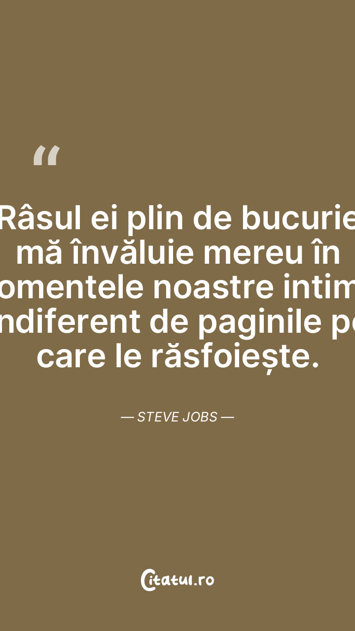 Râsul ei plin de bucurie mă învăluie mereu în momentele noastre intime, indiferent de paginile pe care le răsfoiește. Steve Jobs