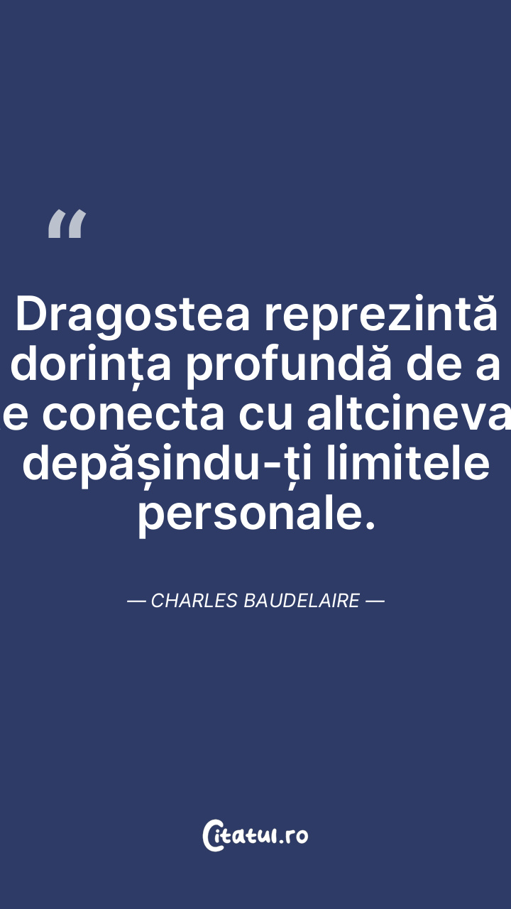Dragostea reprezintă dorința profundă de a te conecta cu altcineva, depășindu-ți limitele personale. Charles Baudelaire