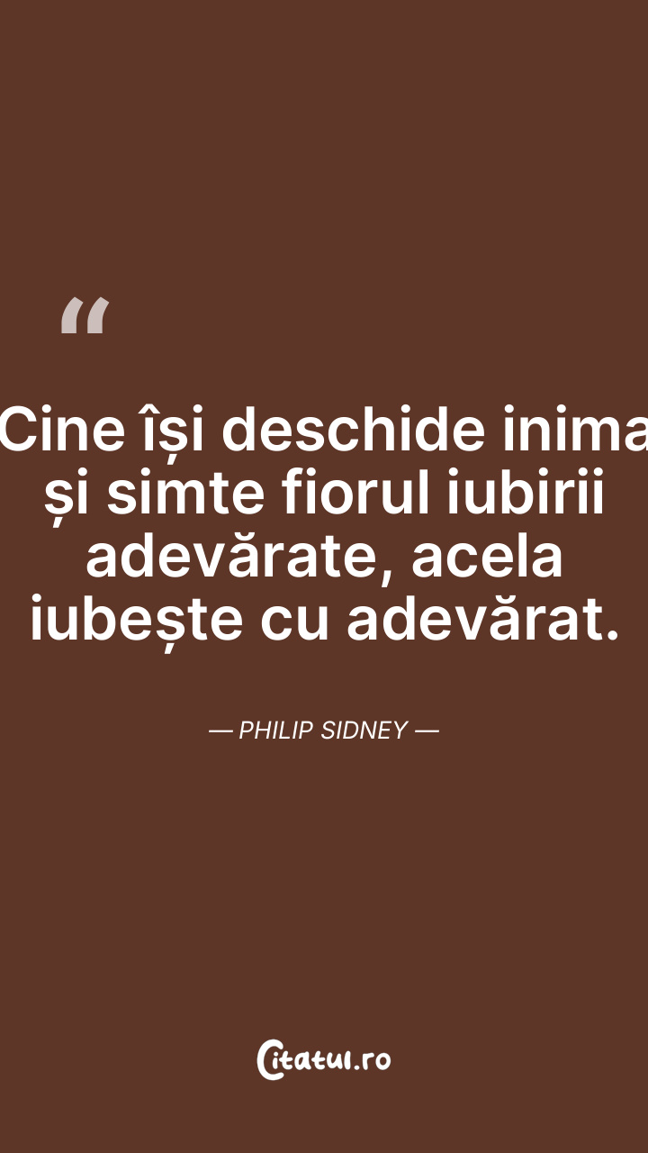Cine își deschide inima și simte fiorul iubirii adevărate, acela iubește cu adevărat. Philip Sidney