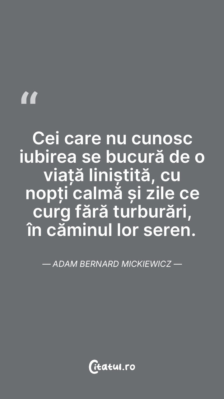 Cei care nu cunosc iubirea se bucură de o viață liniștită, cu nopți calmă și zile ce curg fără turburări, în căminul lor seren. Adam Bernard Mickiewicz