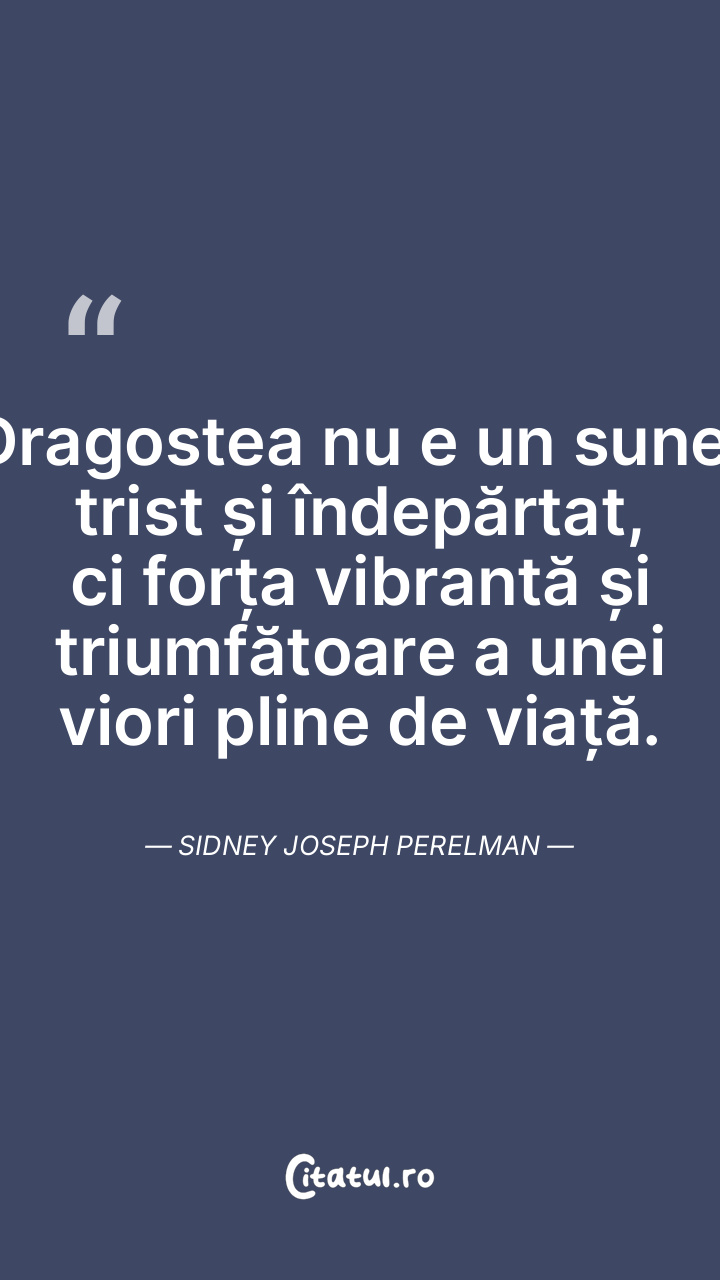 Dragostea nu e un sunet trist și îndepărtat, ci forța vibrantă și triumfătoare a unei viori pline de viață. Sidney Joseph Perelman