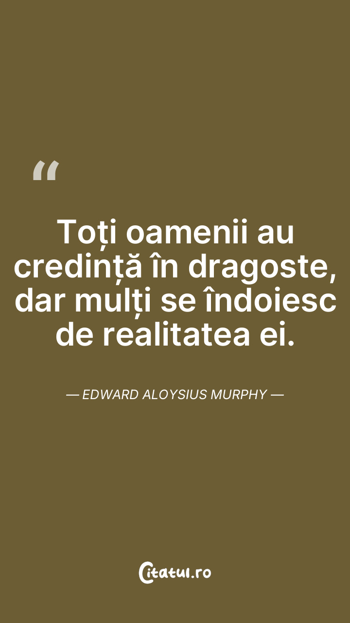 Toți oamenii au credință în dragoste, dar mulți se îndoiesc de realitatea ei. Edward Aloysius Murphy
