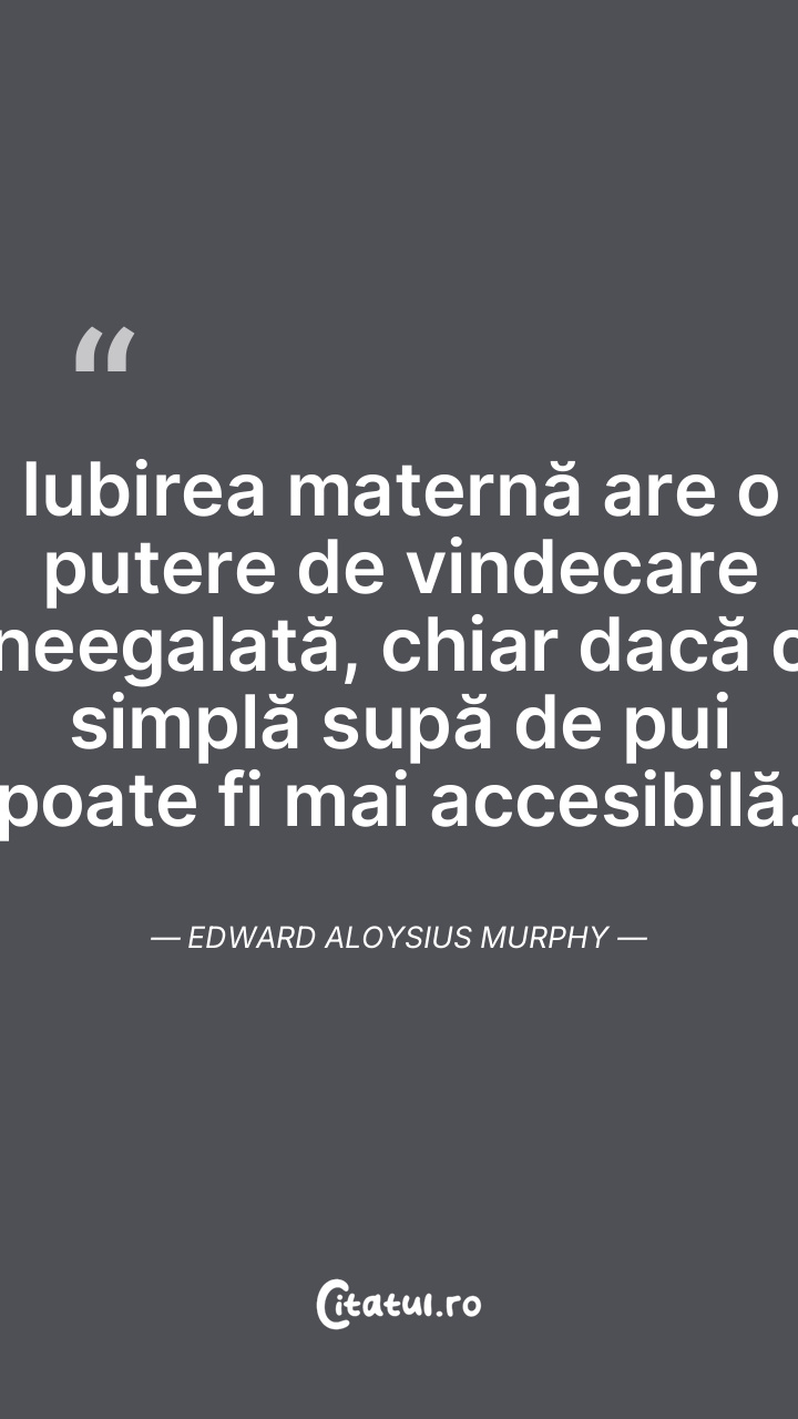 Iubirea maternă are o putere de vindecare neegalată, chiar dacă o simplă supă de pui poate fi mai accesibilă. Edward Aloysius Murphy