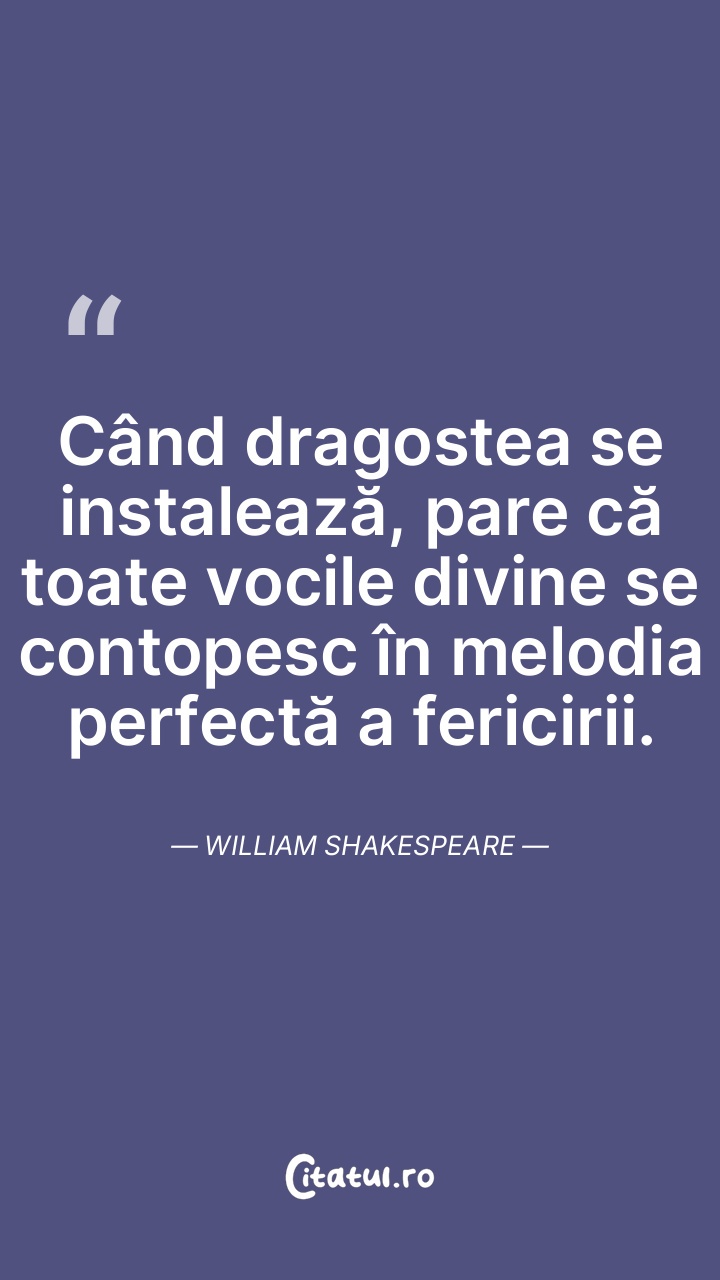 Când dragostea se instalează, pare că toate vocile divine se contopesc în melodia perfectă a fericirii. William Shakespeare