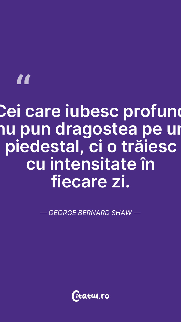 Cei care iubesc profund nu pun dragostea pe un piedestal, ci o trăiesc cu intensitate în fiecare zi. George Bernard Shaw