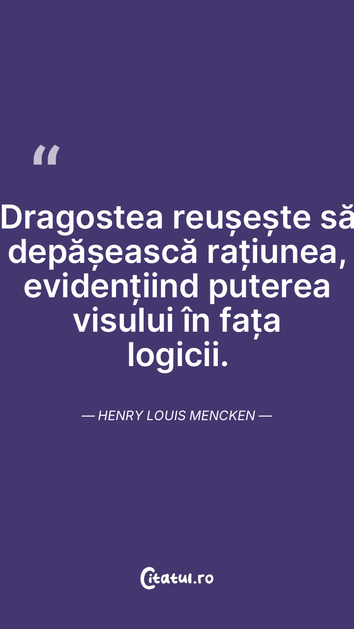 Dragostea reușește să depășească rațiunea, evidențiind puterea visului în fața logicii. Henry Louis Mencken