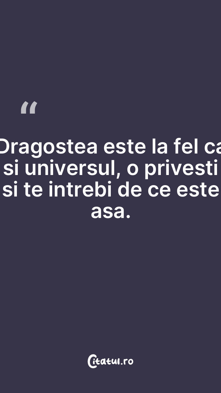 Dragostea este la fel ca si universul, o privesti si te intrebi de ce este asa.