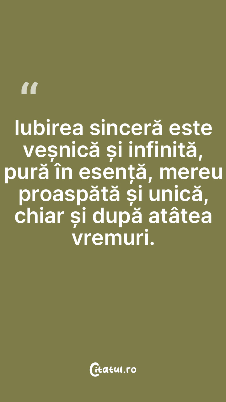 Iubirea sinceră este veșnică și infinită, pură în esență, mereu proaspătă și unică, chiar și după atâtea vremuri.