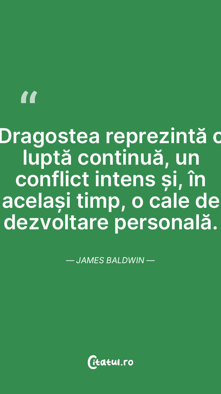 Dragostea reprezintă o luptă continuă, un conflict intens și, în același timp, o cale de dezvoltare personală. James Baldwin