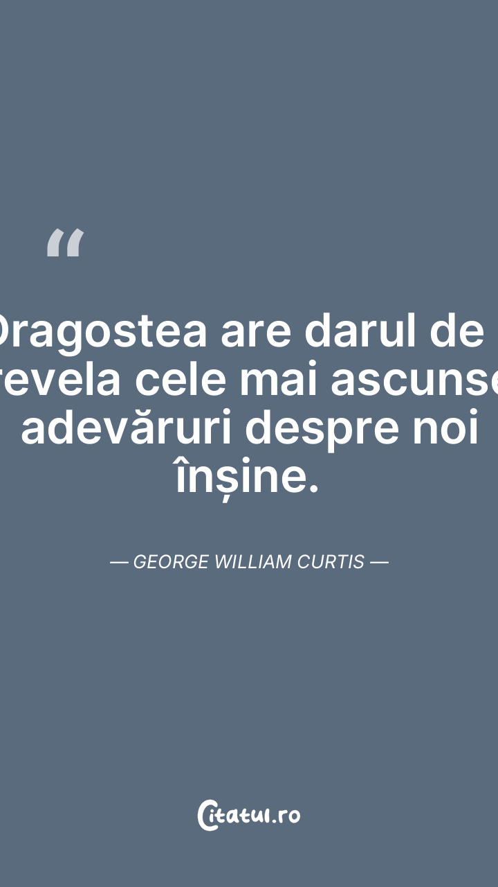 Dragostea are darul de a revela cele mai ascunse adevăruri despre noi înșine. George William Curtis