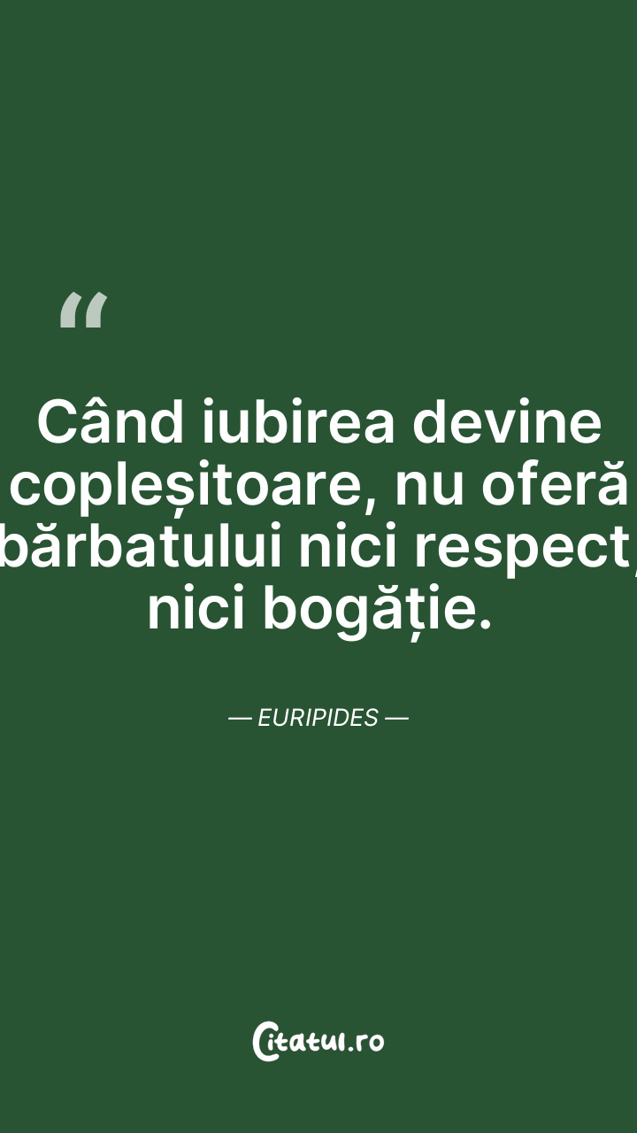 Când iubirea devine copleșitoare, nu oferă bărbatului nici respect, nici bogăție. Euripides