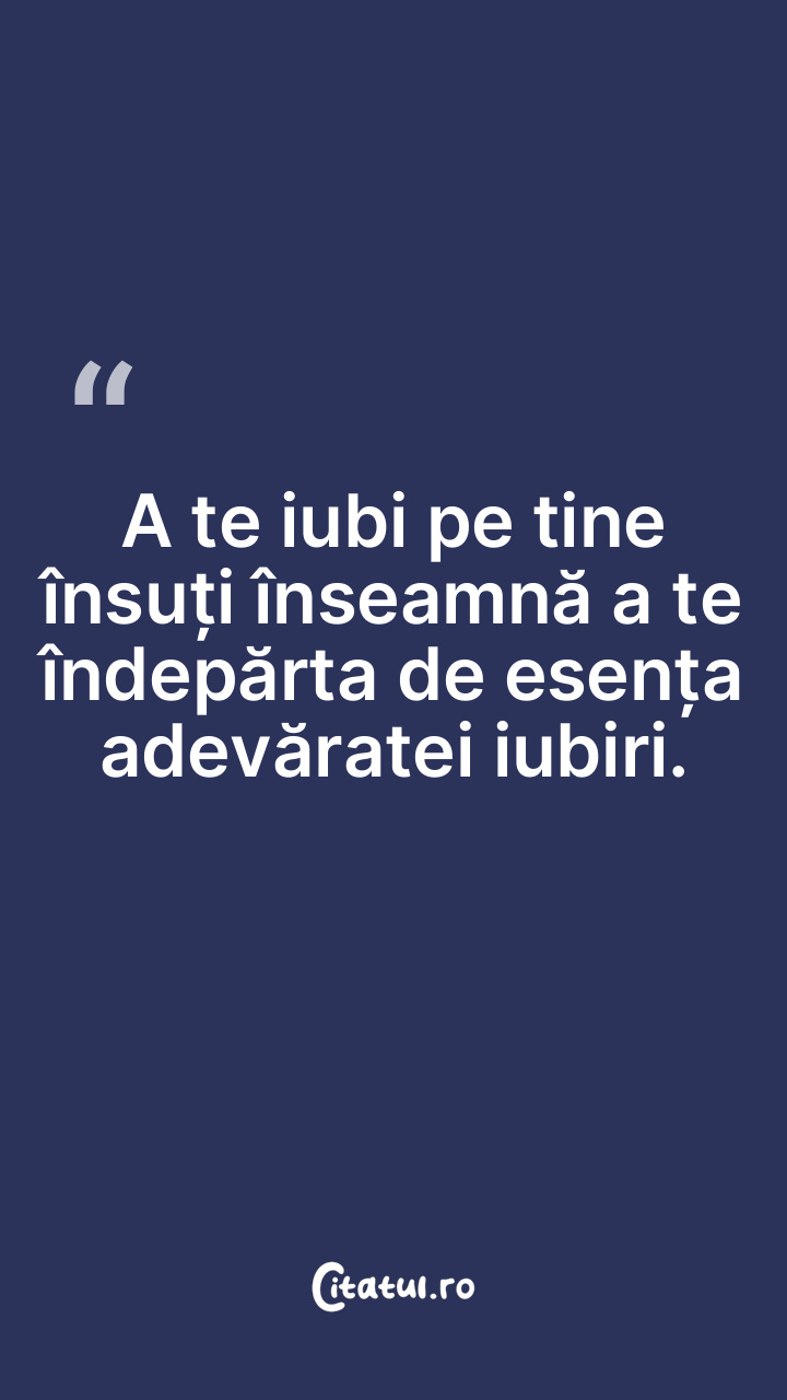 A te iubi pe tine însuți înseamnă a te îndepărta de esența adevăratei iubiri.