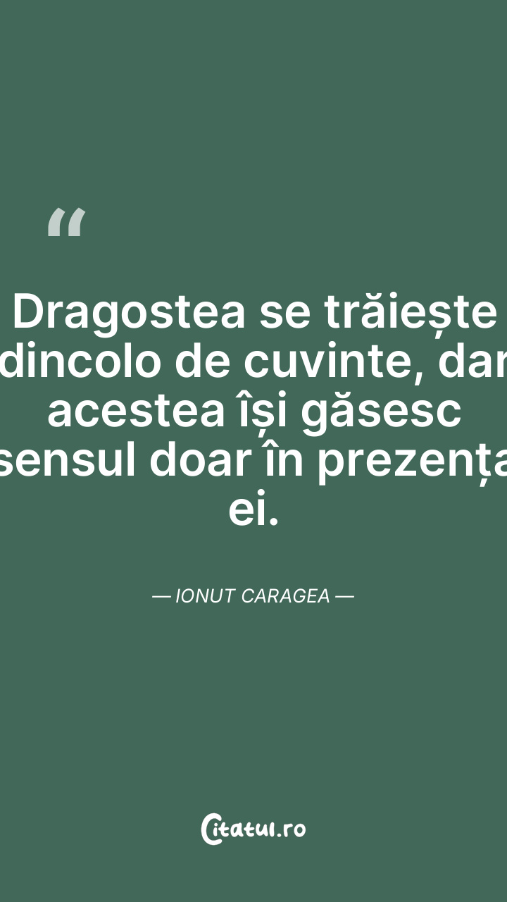 Dragostea se trăiește dincolo de cuvinte, dar acestea își găsesc sensul doar în prezența ei. Ionut Caragea