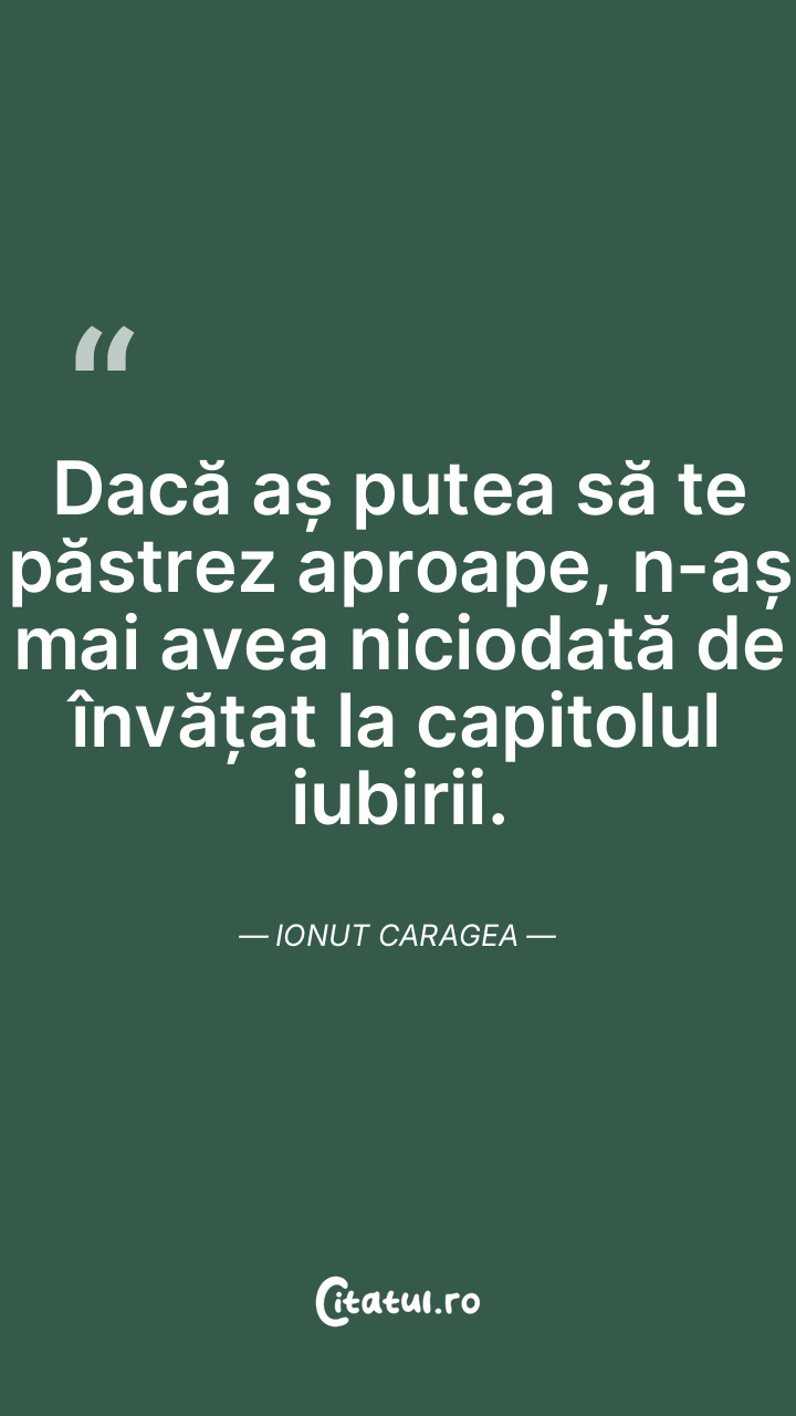 Dacă aș putea să te păstrez aproape, n-aș mai avea niciodată de învățat la capitolul iubirii. Ionut Caragea