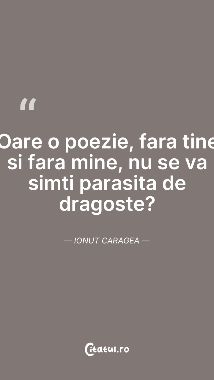 Oare o poezie, fara tine si fara mine, nu se va simti parasita de dragoste? Ionut Caragea