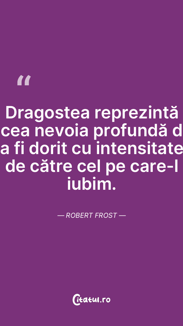 Dragostea reprezintă acea nevoia profundă de a fi dorit cu intensitate de către cel pe care-l iubim. Robert Frost