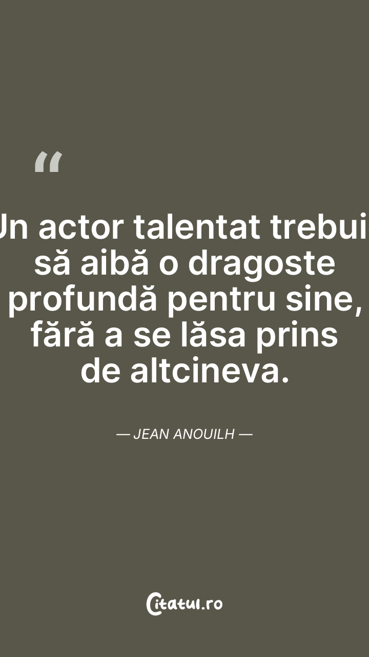 Un actor talentat trebuie să aibă o dragoste profundă pentru sine, fără a se lăsa prins de altcineva. Jean Anouilh