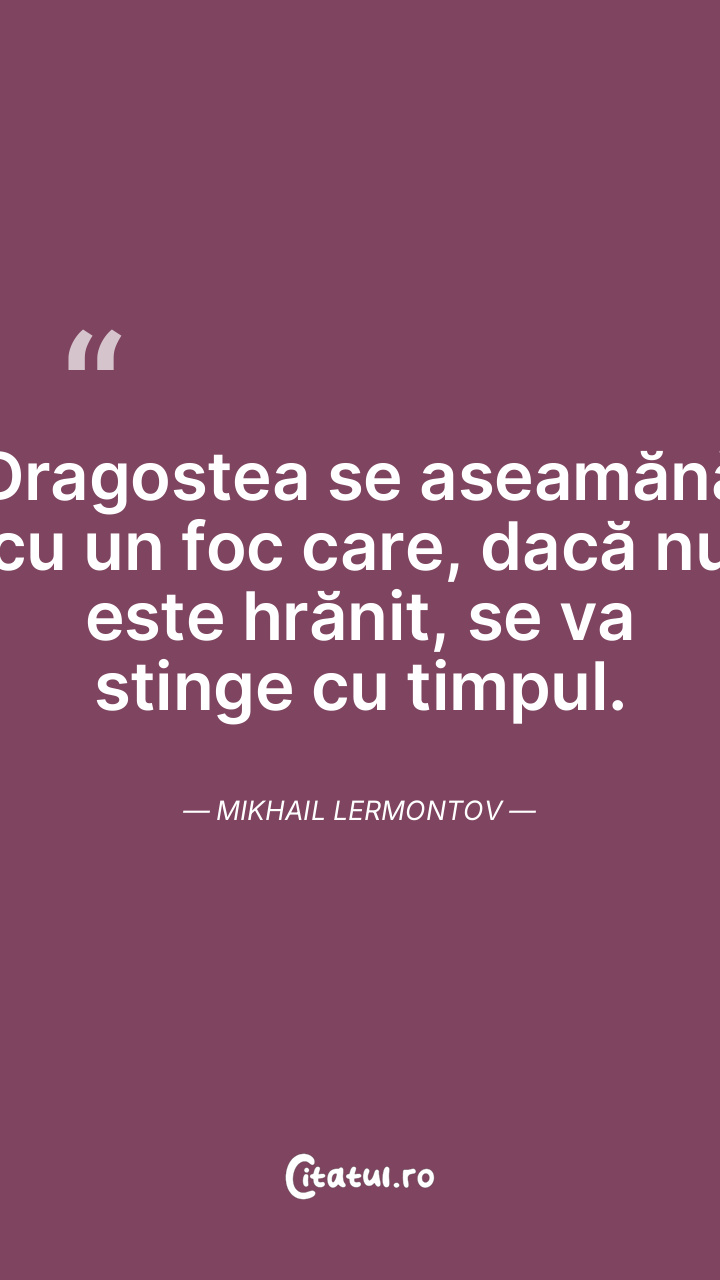Dragostea se aseamănă cu un foc care, dacă nu este hrănit, se va stinge cu timpul. Mikhail Lermontov