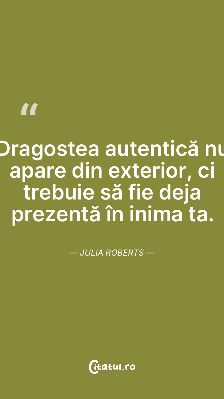 Dragostea autentică nu apare din exterior, ci trebuie să fie deja prezentă în inima ta. Julia Roberts