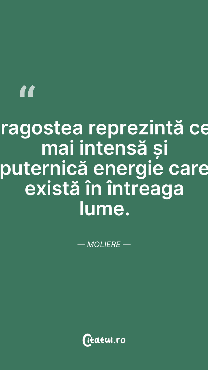 Dragostea reprezintă cea mai intensă și puternică energie care există în întreaga lume. Moliere