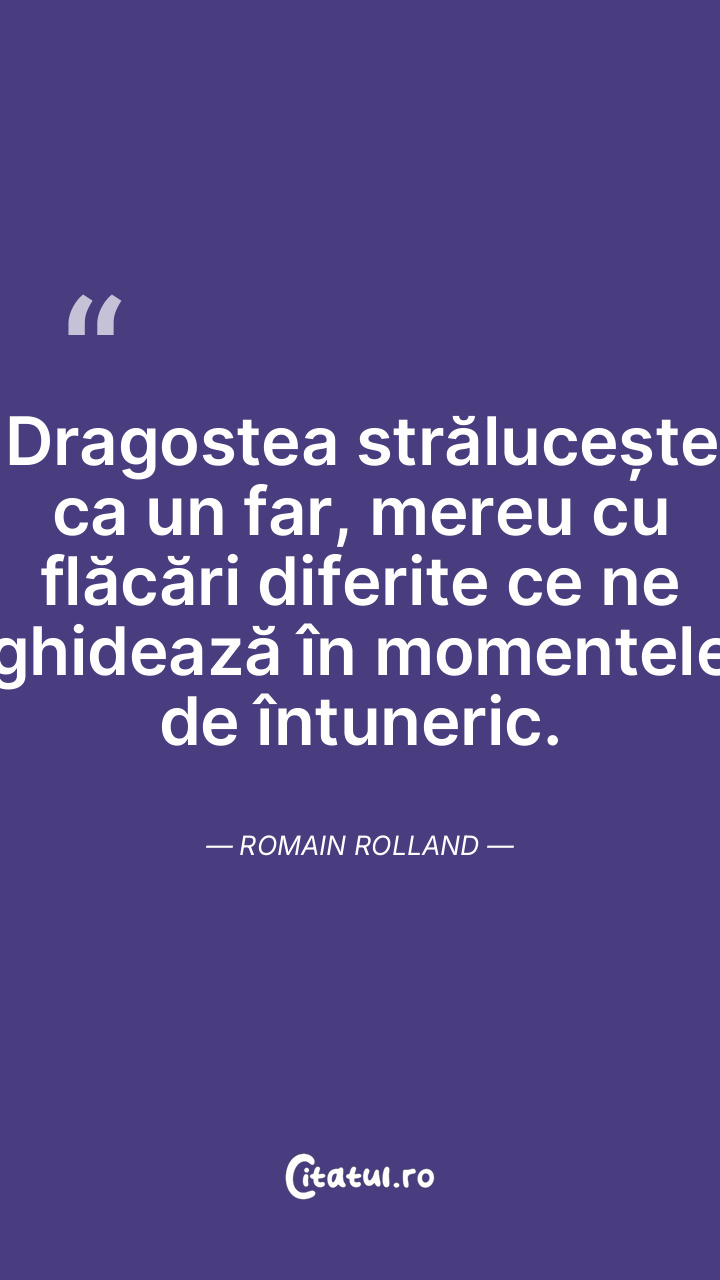 Dragostea strălucește ca un far, mereu cu flăcări diferite ce ne ghidează în momentele de întuneric. Romain Rolland