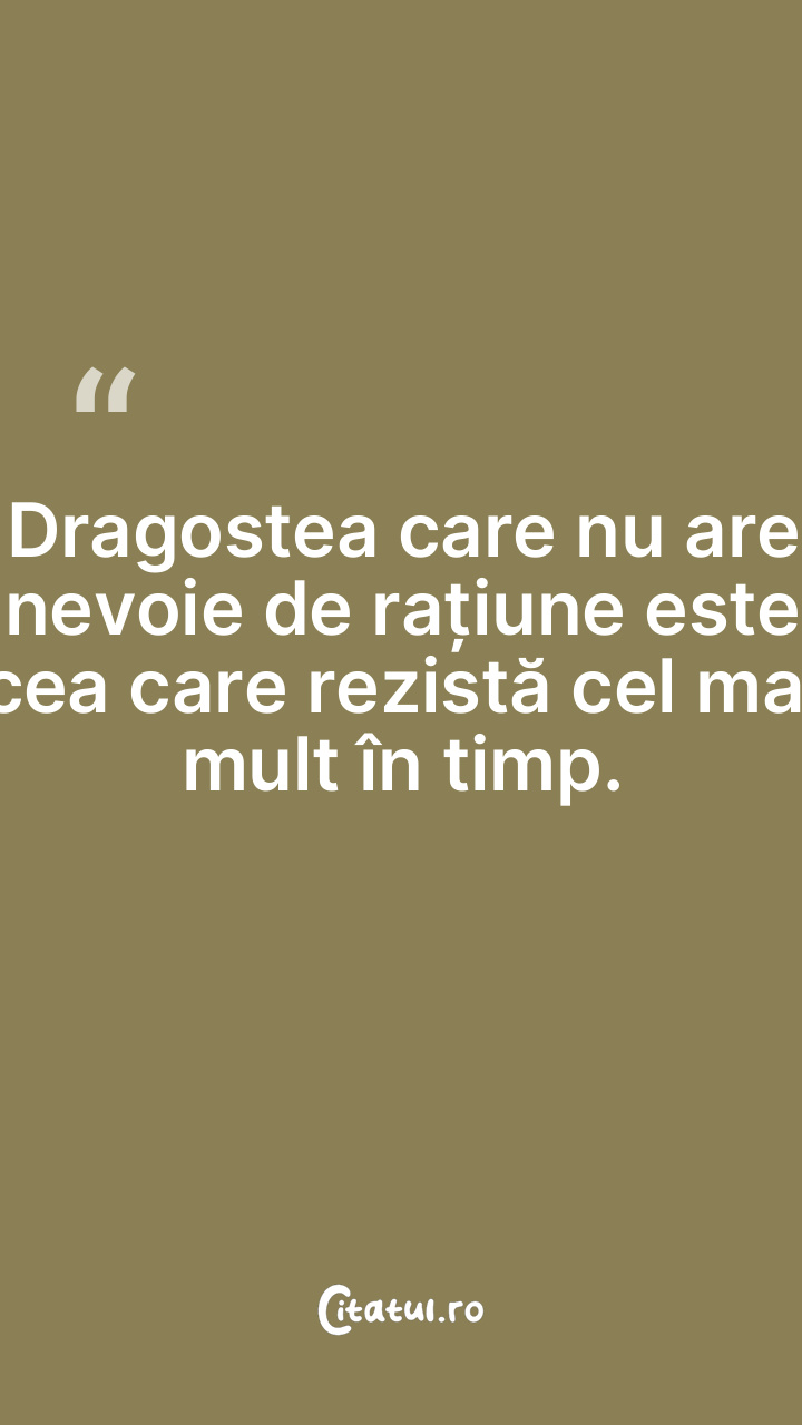 Dragostea care nu are nevoie de rațiune este cea care rezistă cel mai mult în timp.