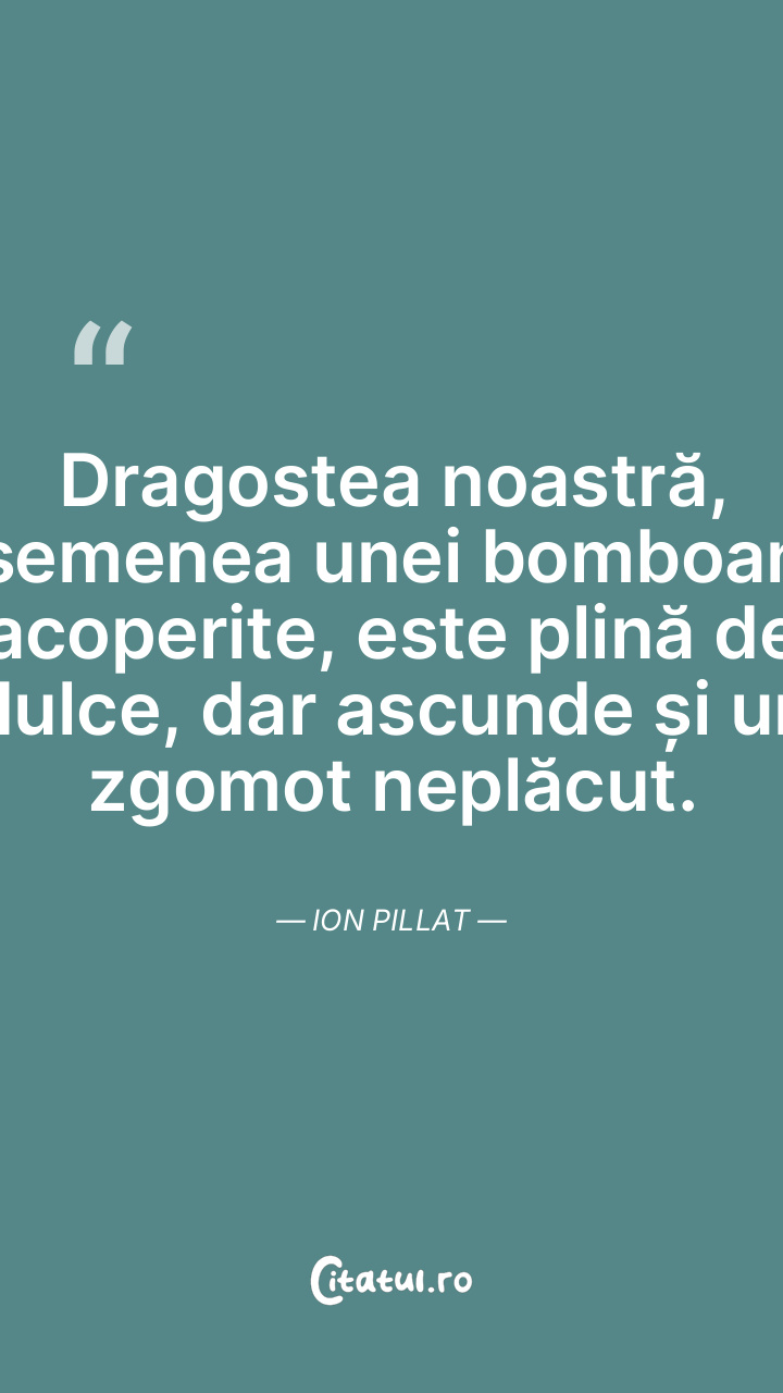 Dragostea noastră, asemenea unei bomboane acoperite, este plină de dulce, dar ascunde și un zgomot neplăcut. Ion Pillat
