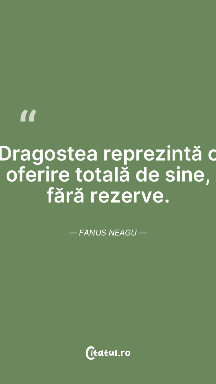 Dragostea reprezintă o oferire totală de sine, fără rezerve. Fanus Neagu
