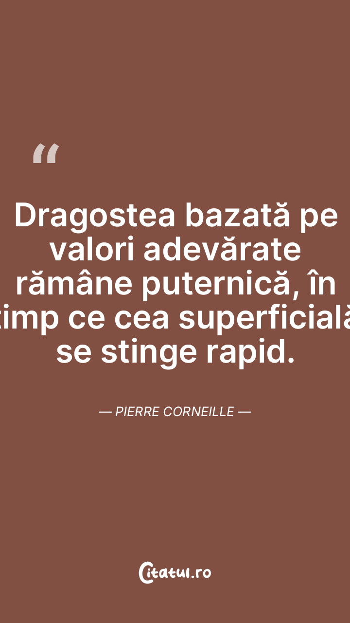 Dragostea bazată pe valori adevărate rămâne puternică, în timp ce cea superficială se stinge rapid. Pierre Corneille