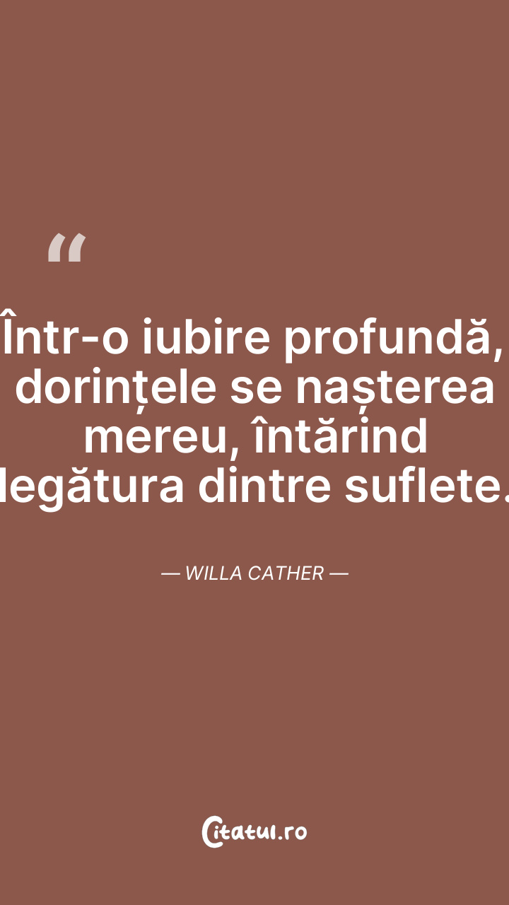 Într-o iubire profundă, dorințele se nașterea mereu, întărind legătura dintre suflete. Willa Cather
