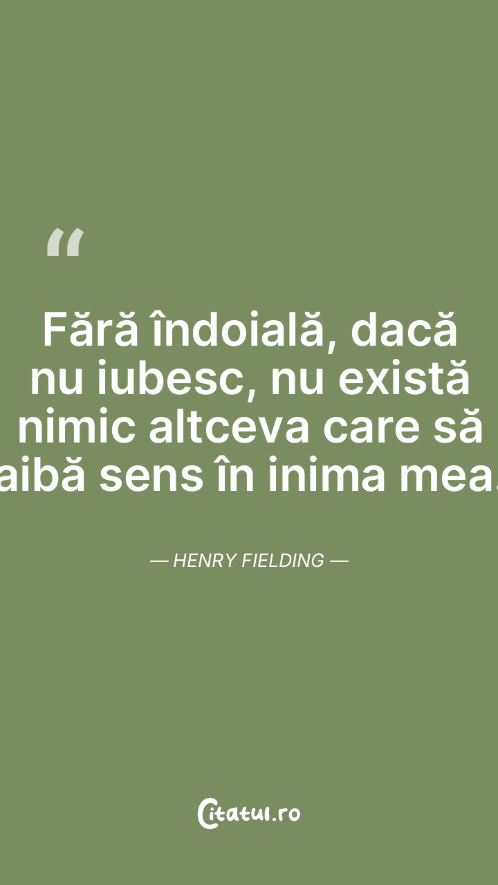 Fără îndoială, dacă nu iubesc, nu există nimic altceva care să aibă sens în inima mea. Henry Fielding